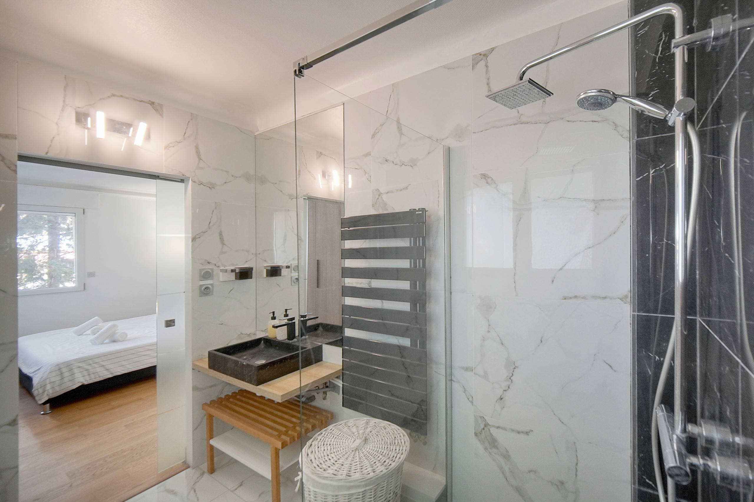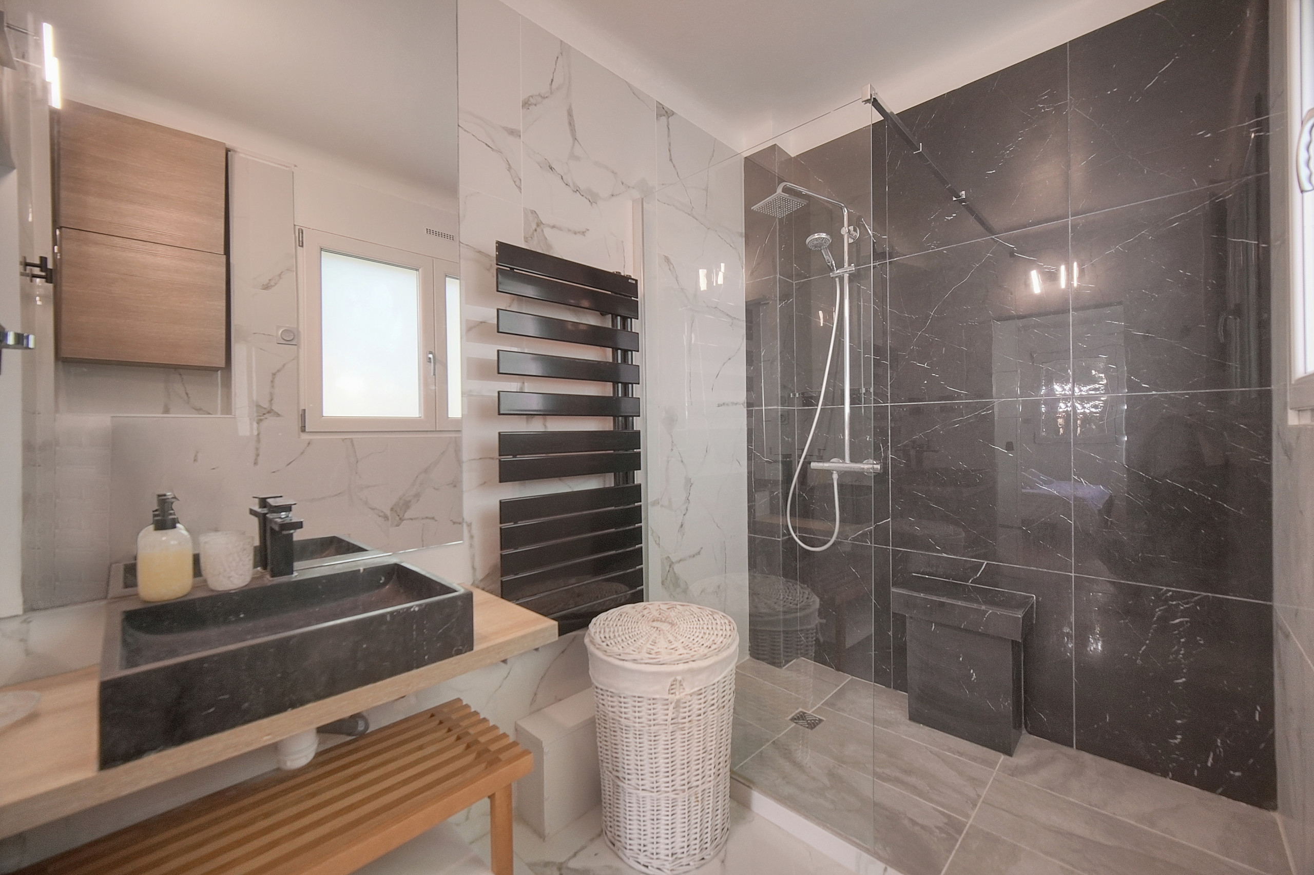 ✔️ Salle de bain moderne 🚿 – Douche, articles de toilette gratuits, sèche-cheveux