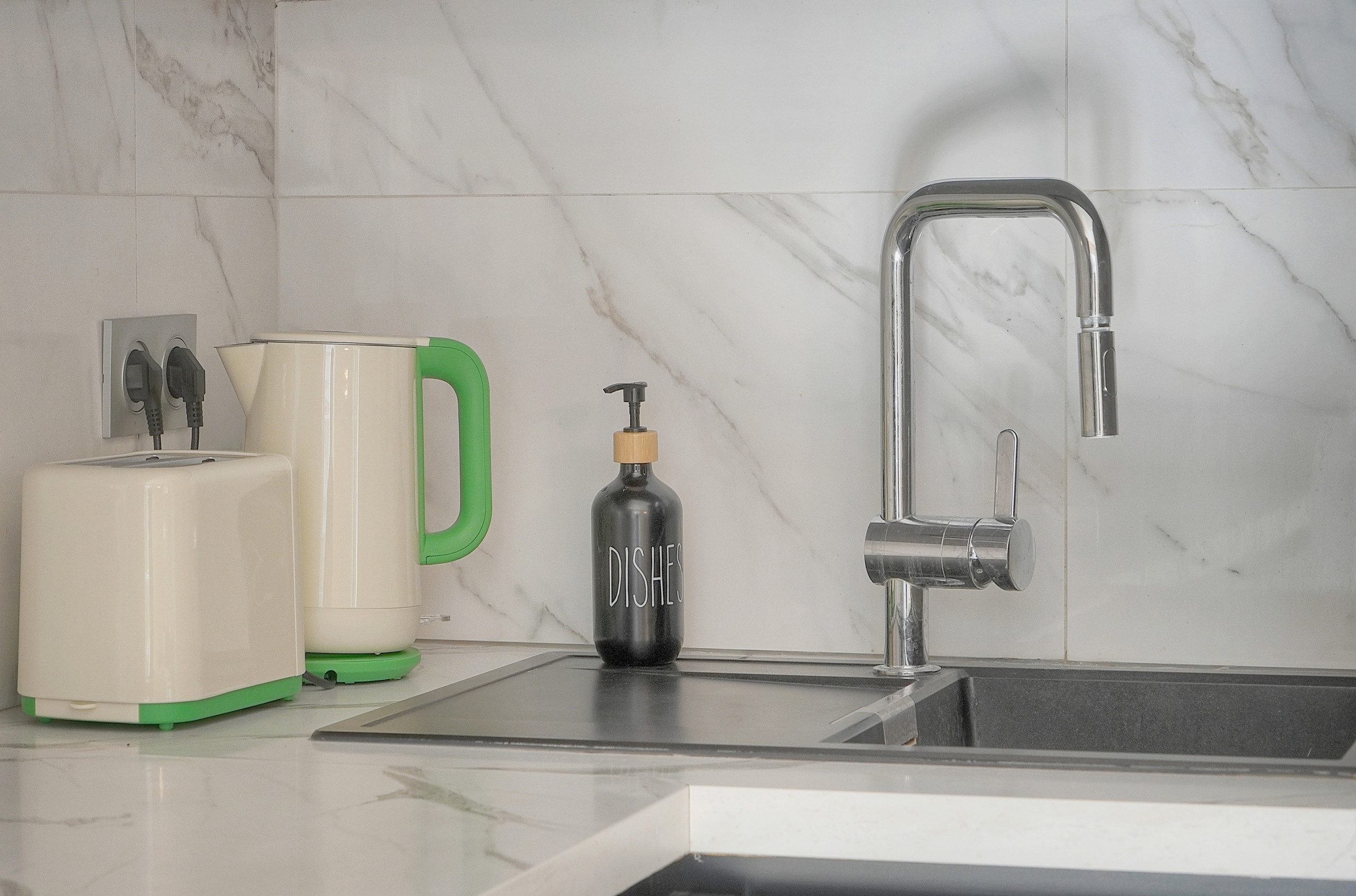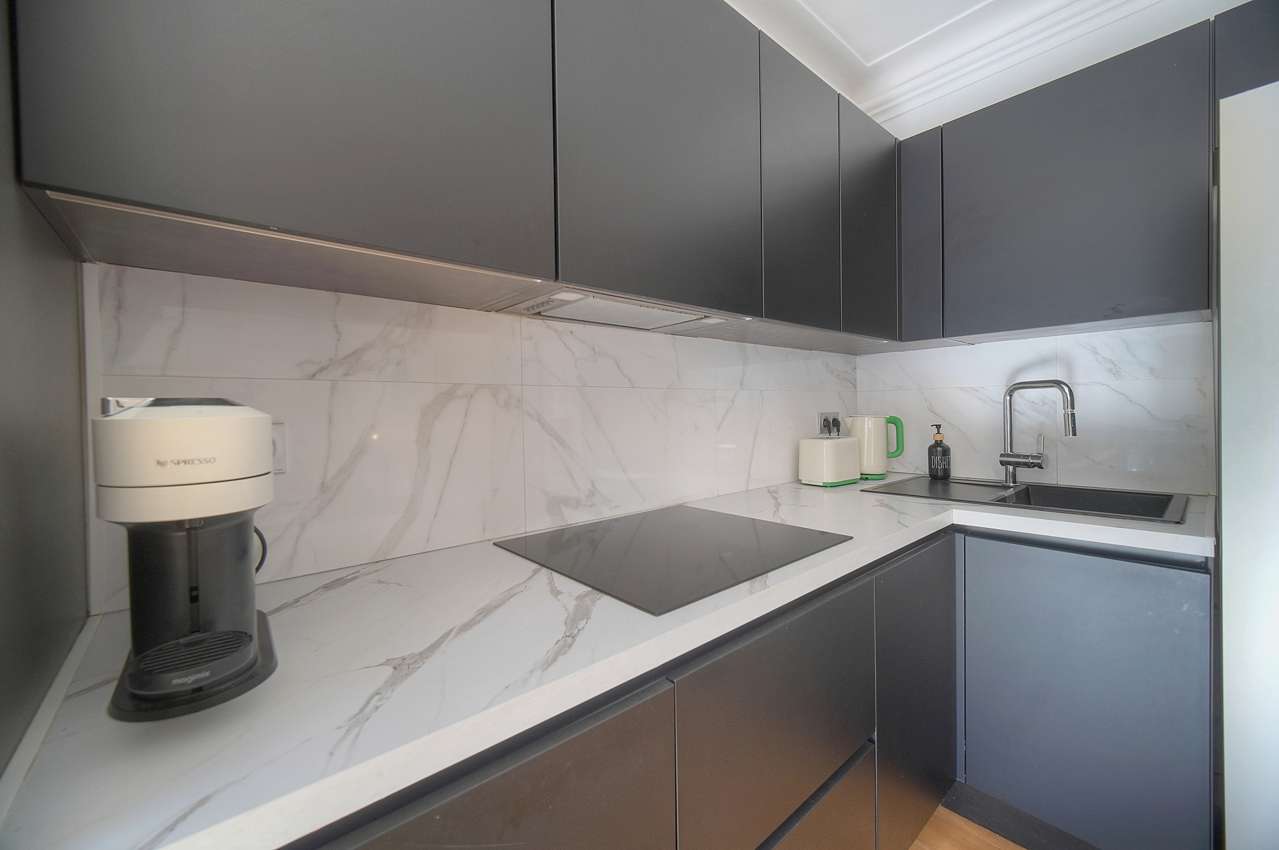 ✔️ Cuisine équipée 🍽️ – Réfrigérateur, lave-vaisselle, micro-ondes, machine à café