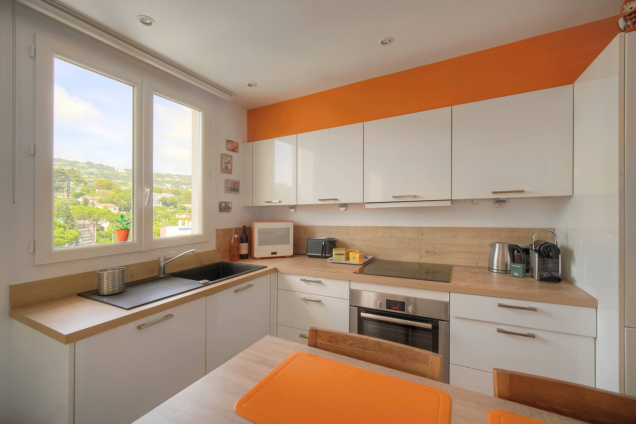 🍽️ Cuisine entièrement équipée : réfrigérateur, four, machine à café, ustensiles de cuisine, tout le nécessaire pour cuisiner comme à la maison.