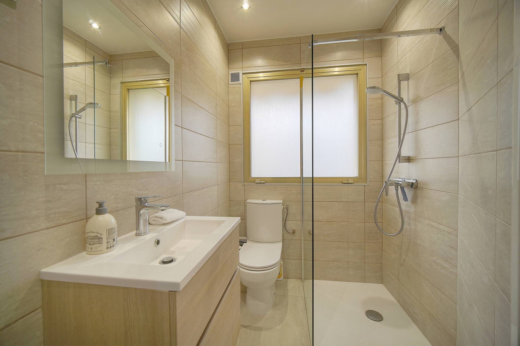 - **Salle de bains moderne** : douche, toilettes et lavabo, serviettes fournies.