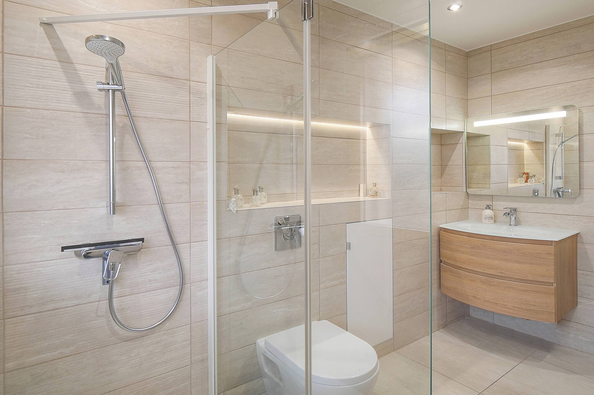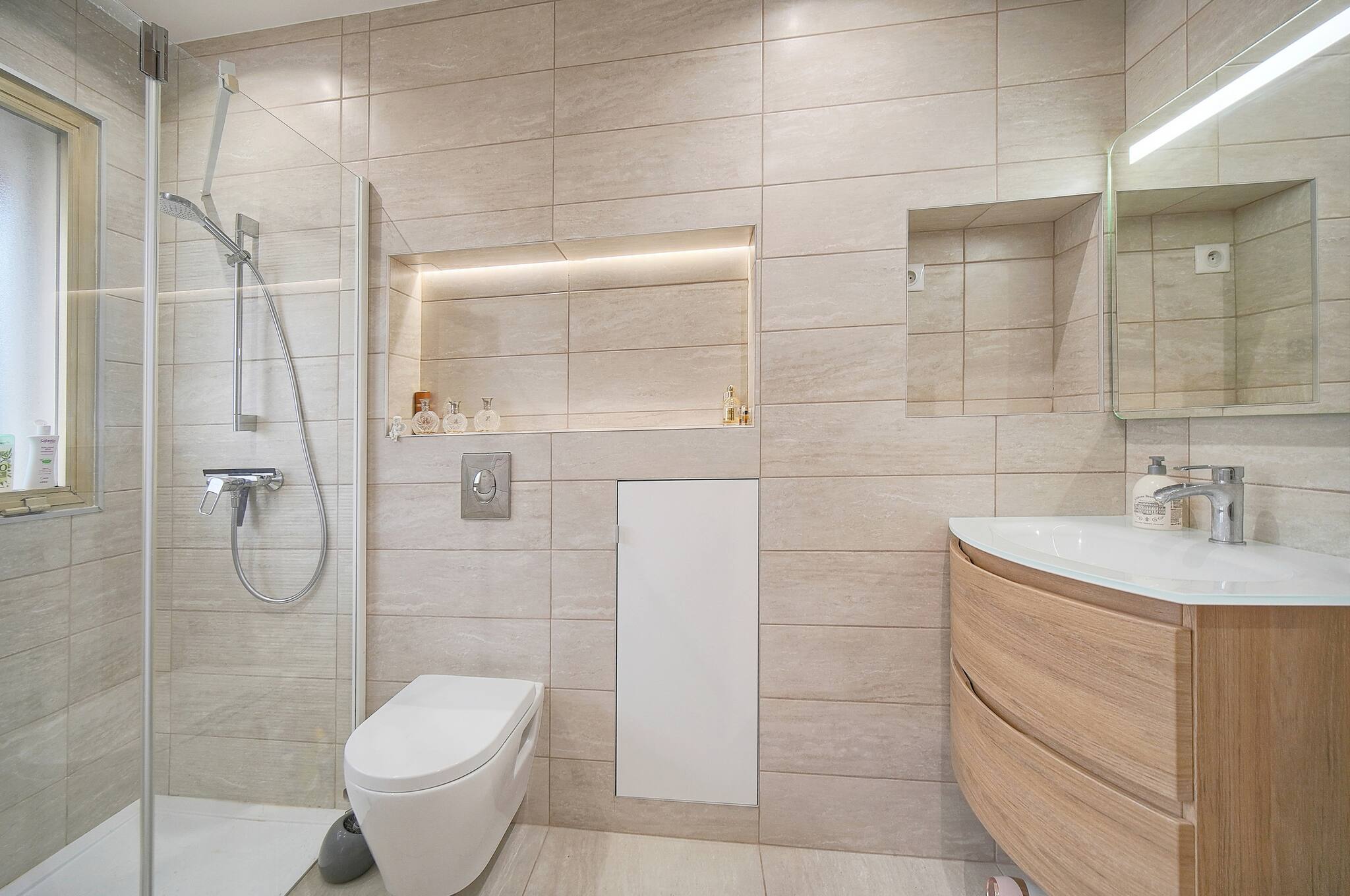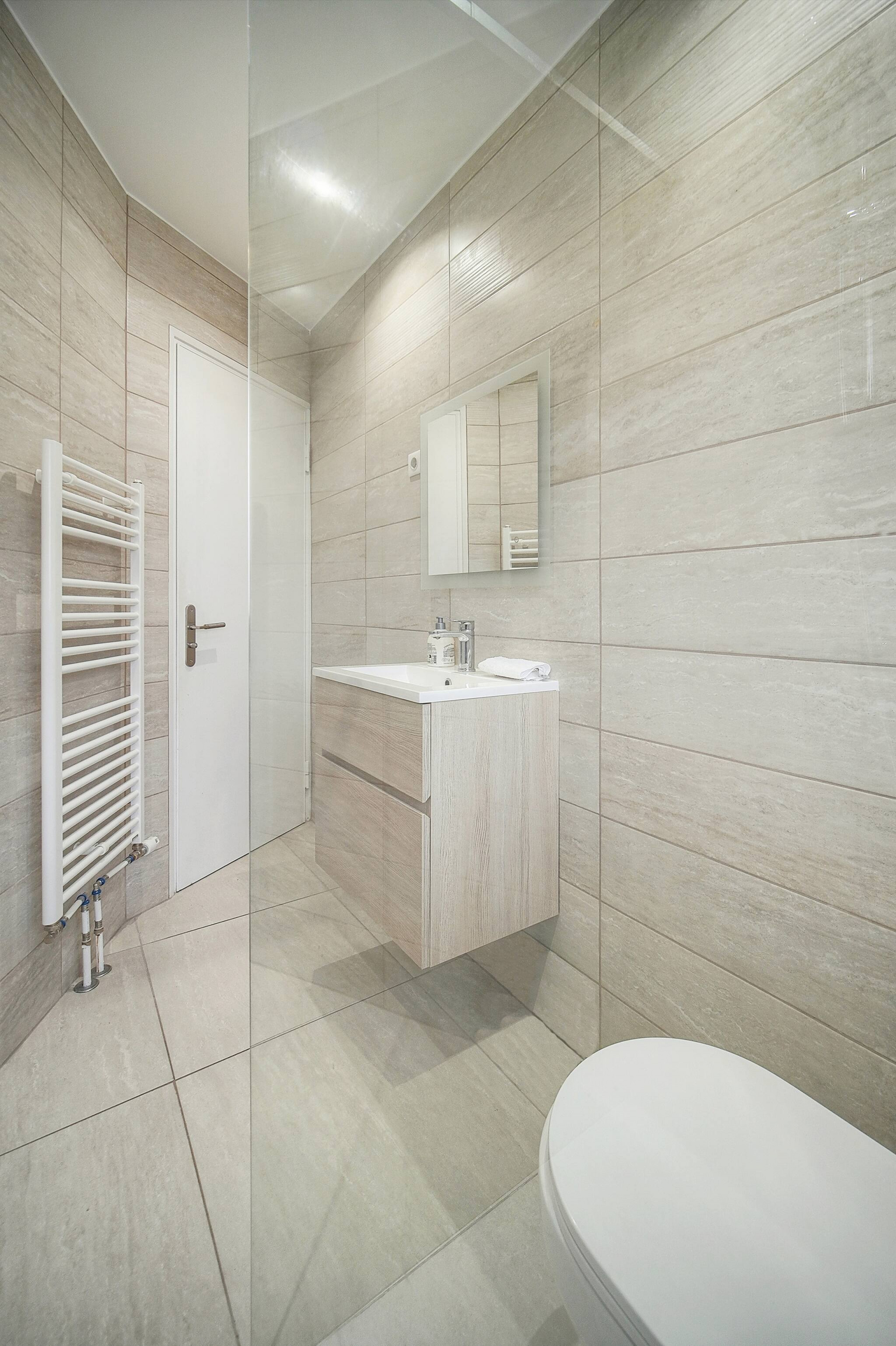 ✔️ Salle de bain moderne 🚿 – Douche, articles de toilette gratuits, sèche-cheveux