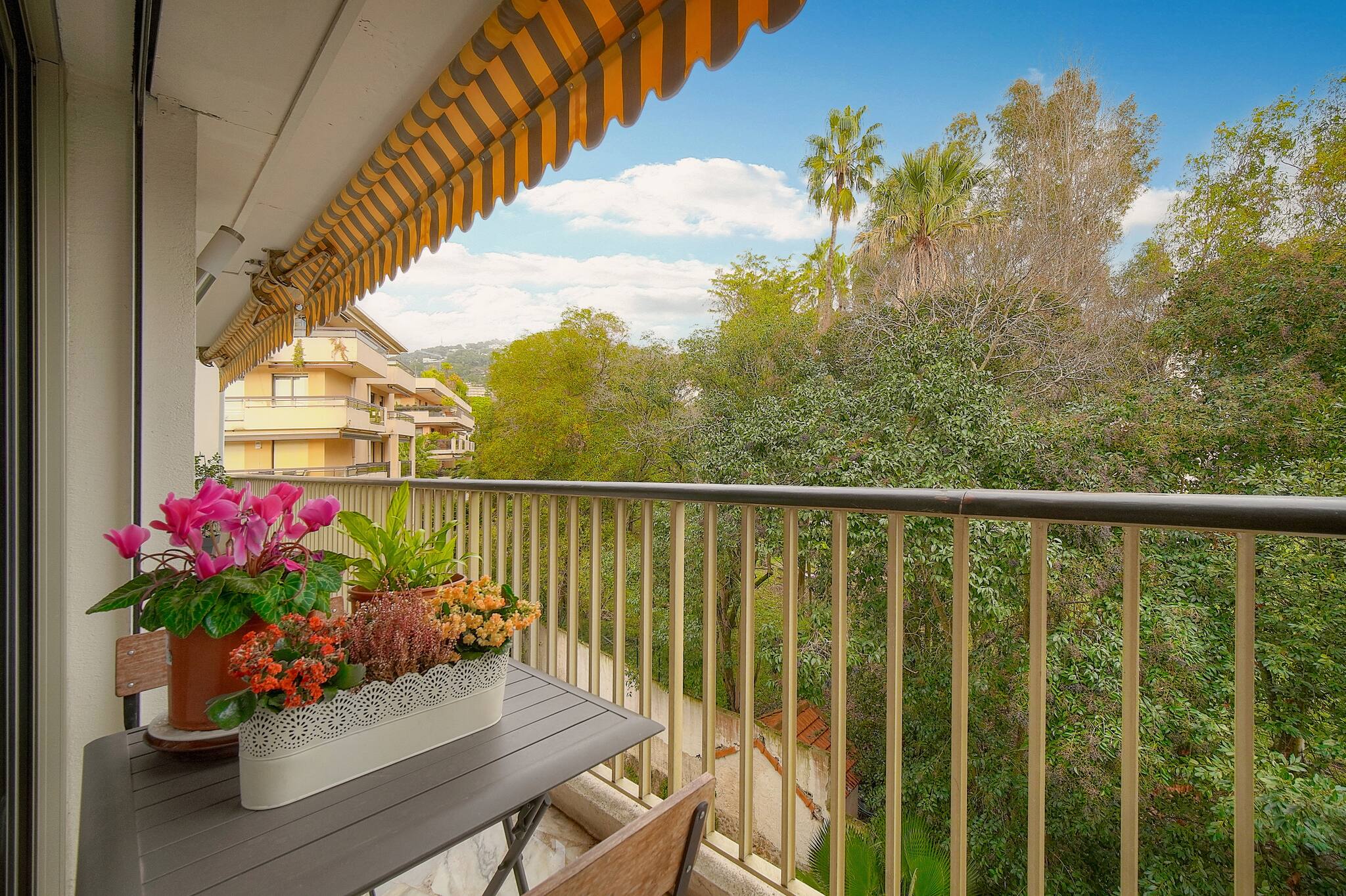 Bienvenue dans l'appartement **"Prince de Galles Terrasse sur Jardin"**, un havre de paix à Cannes, situé dans le quartier prisé de La Californie Pezou. Avec ses 70 m² de surface et sa vue sur un jardin luxuriant, cet appartement allie confort, élégance et praticité pour un séjour inoubliable sur la Côte d’Azur.