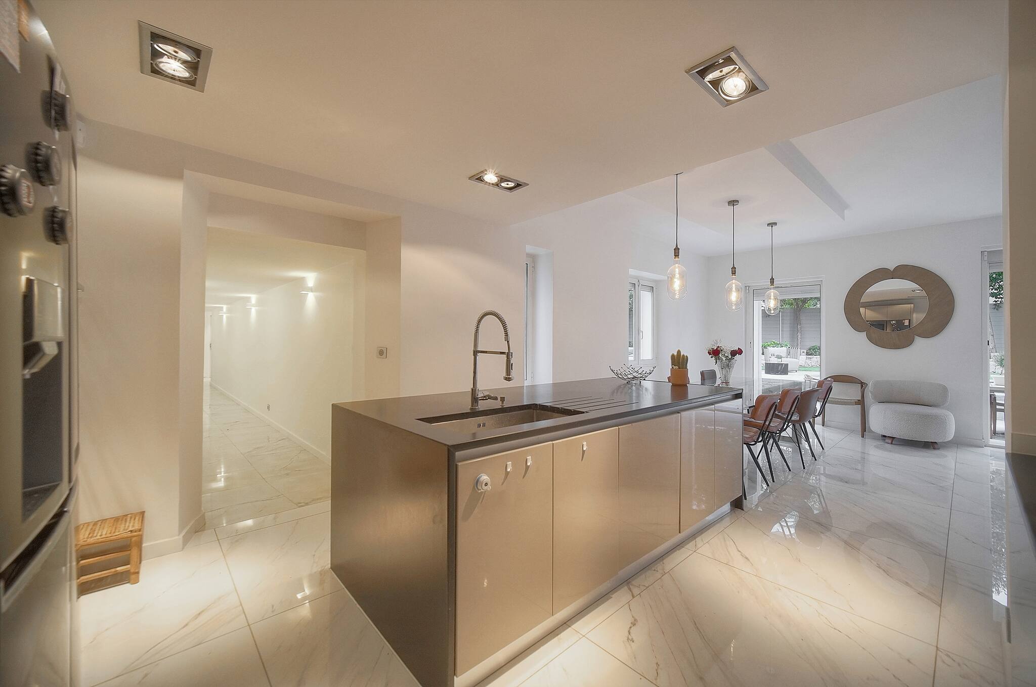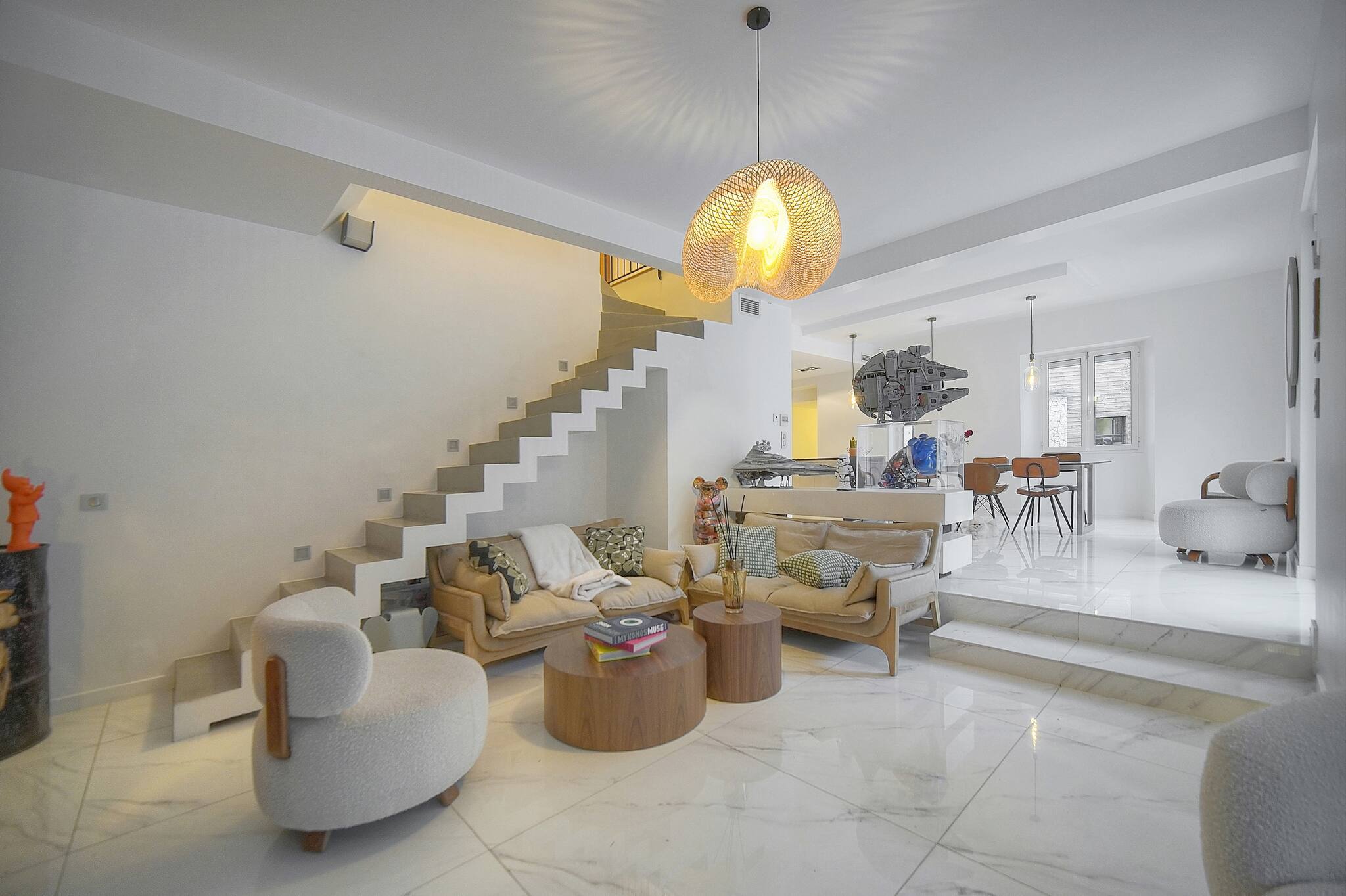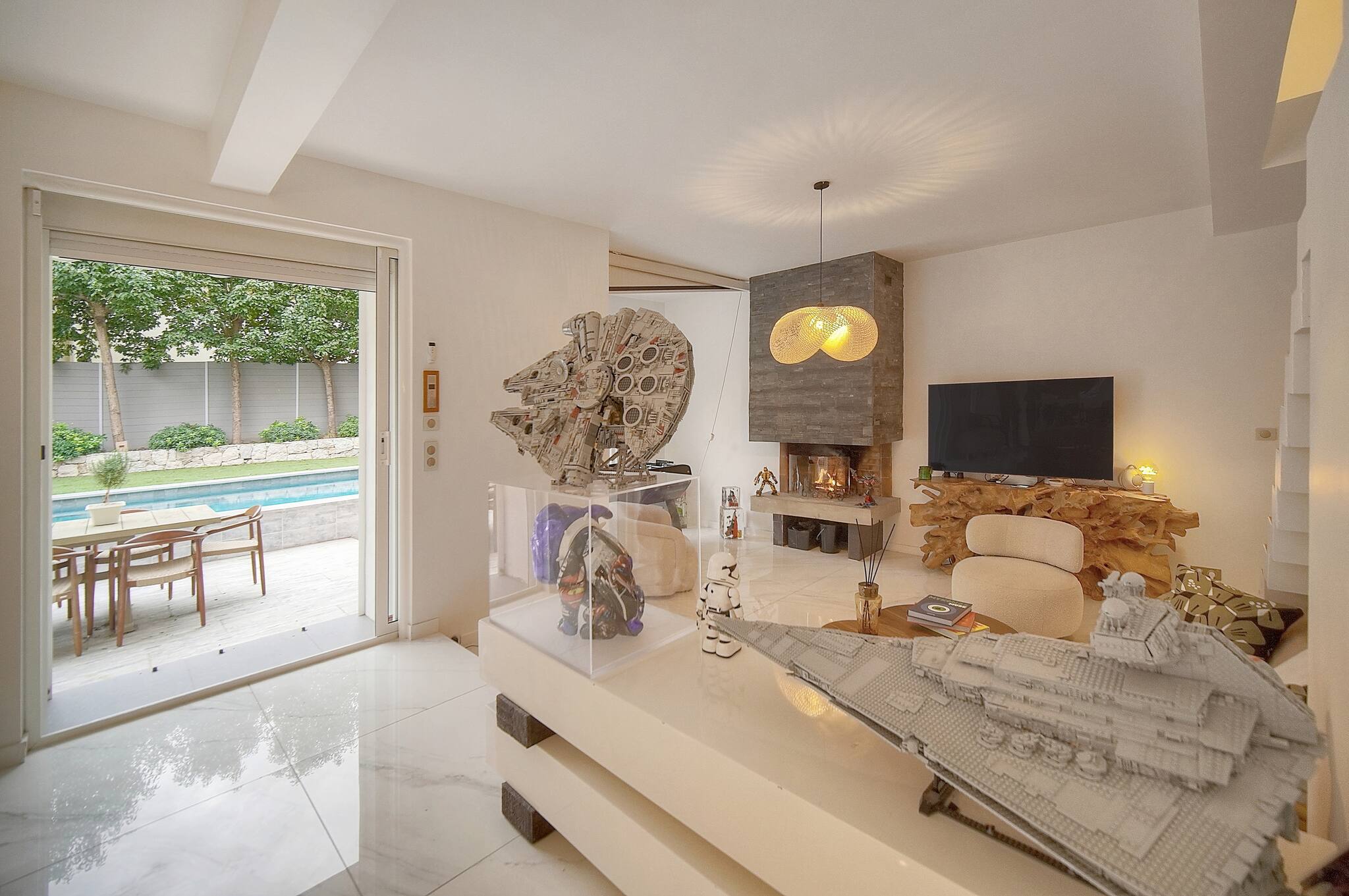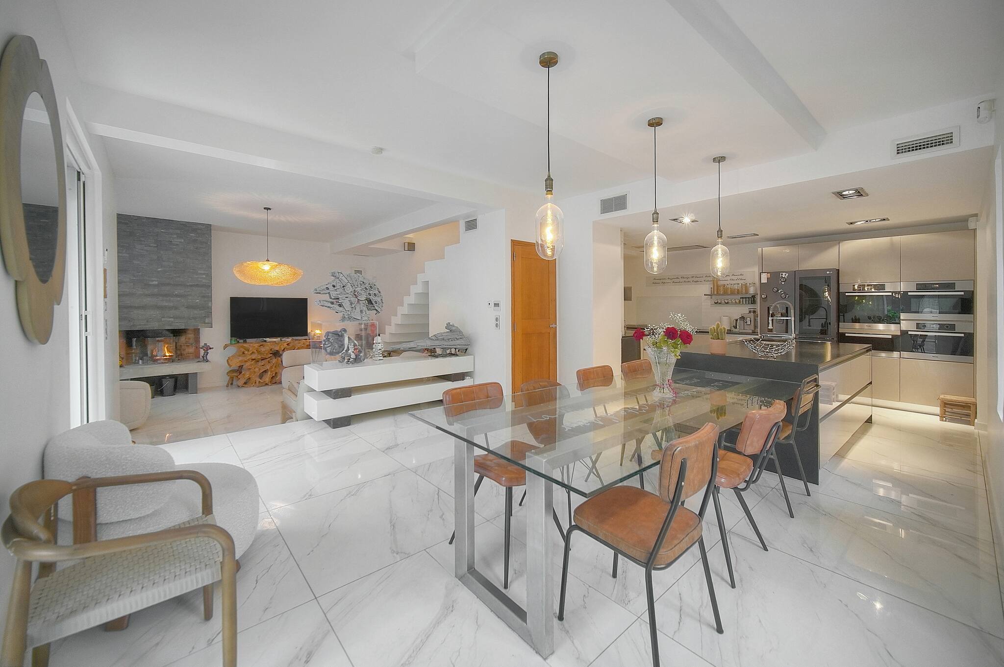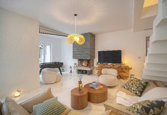 - Grand salon ouvert sur la terrasse et le jardin.