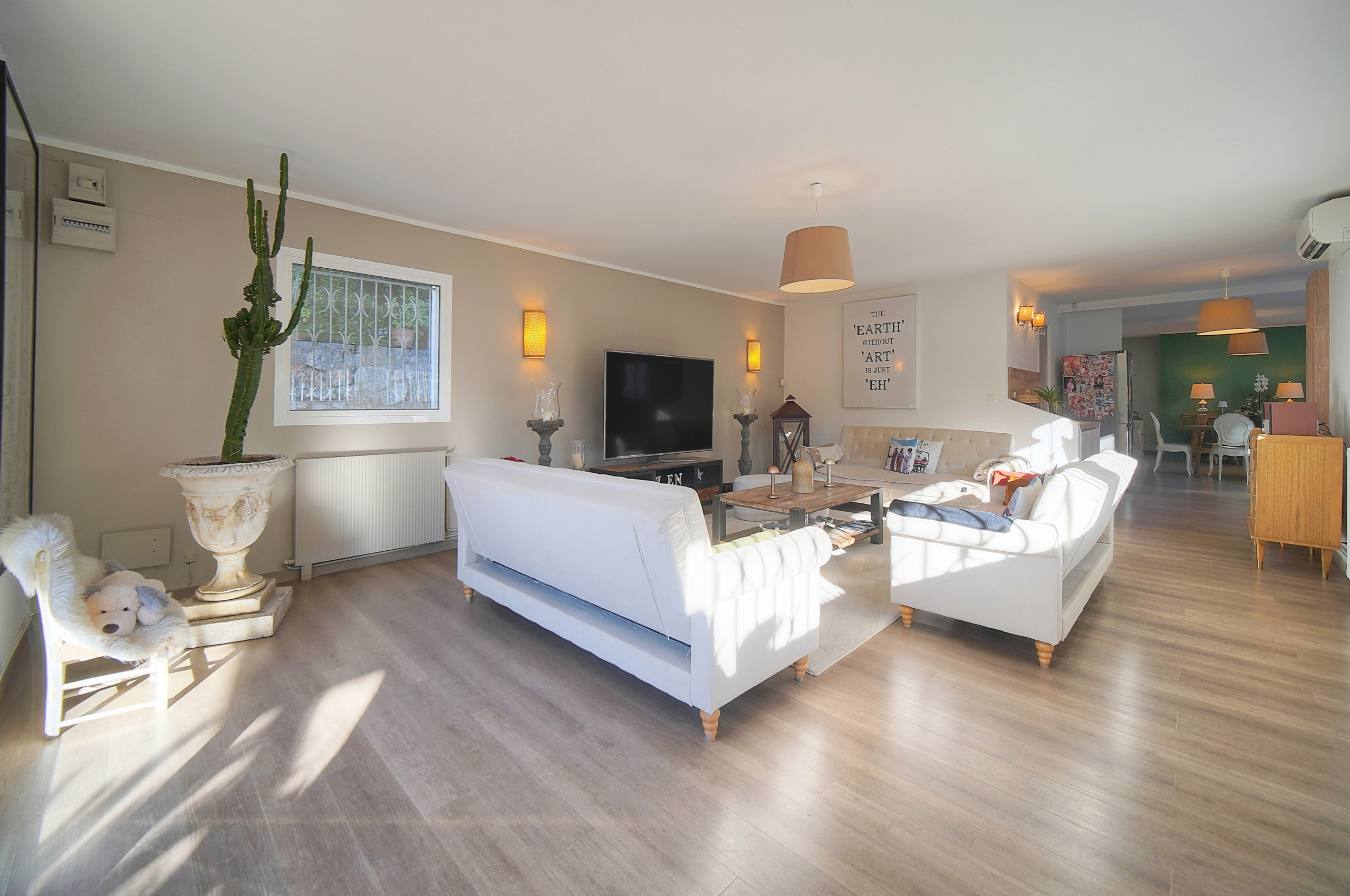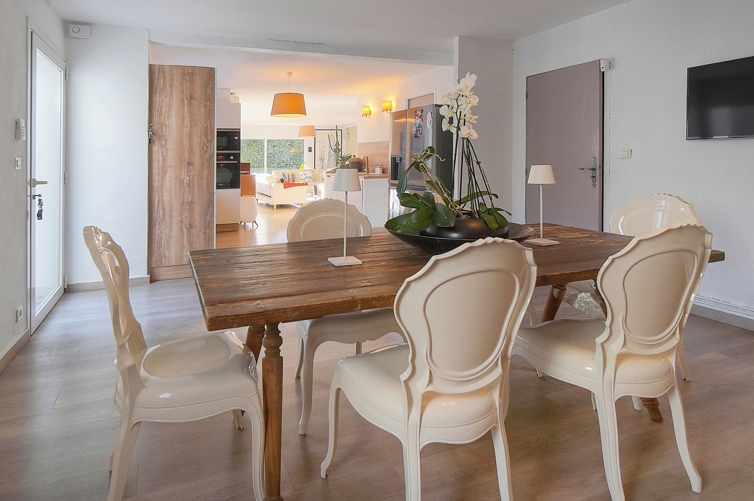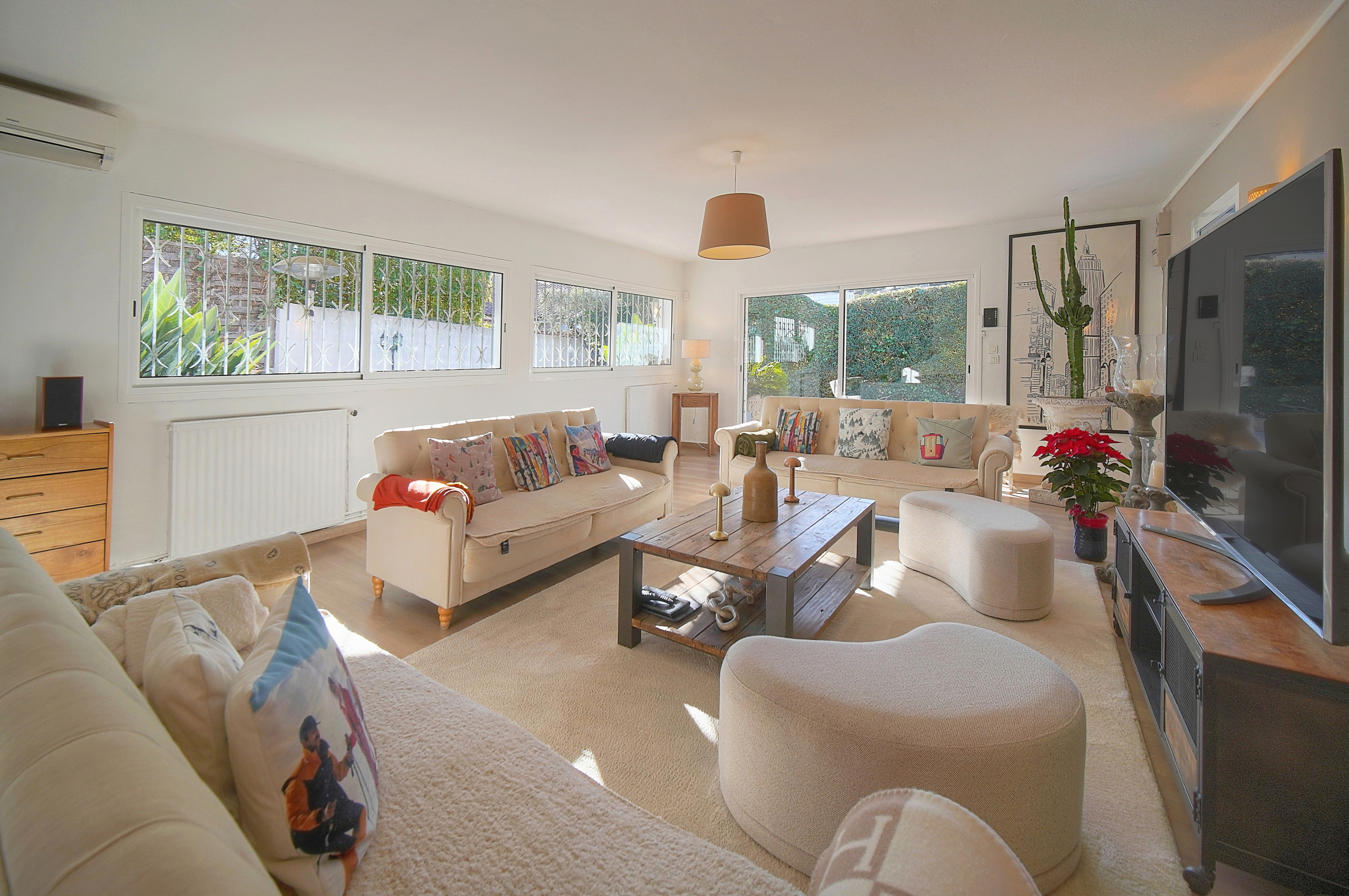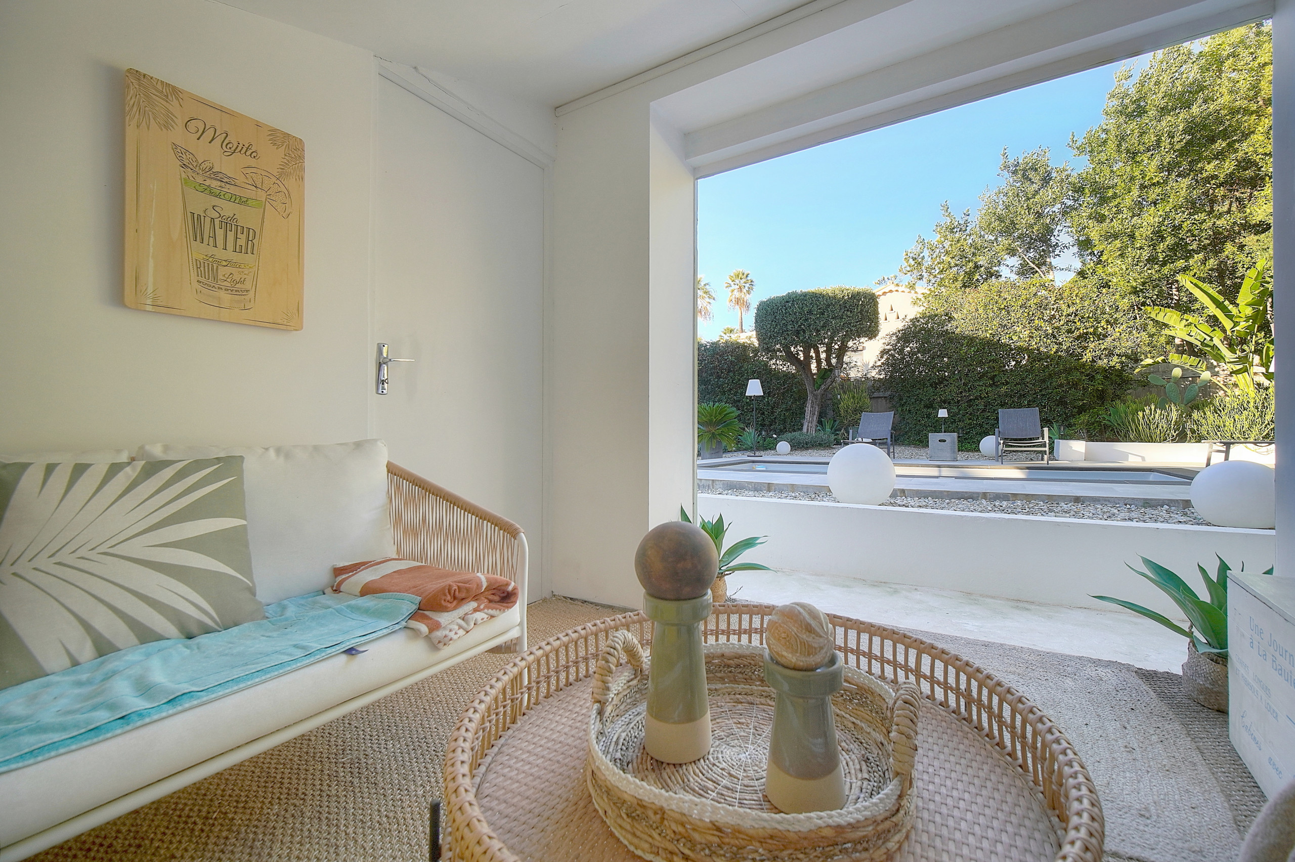 - Grand salon ouvert sur la terrasse et le jardin.
