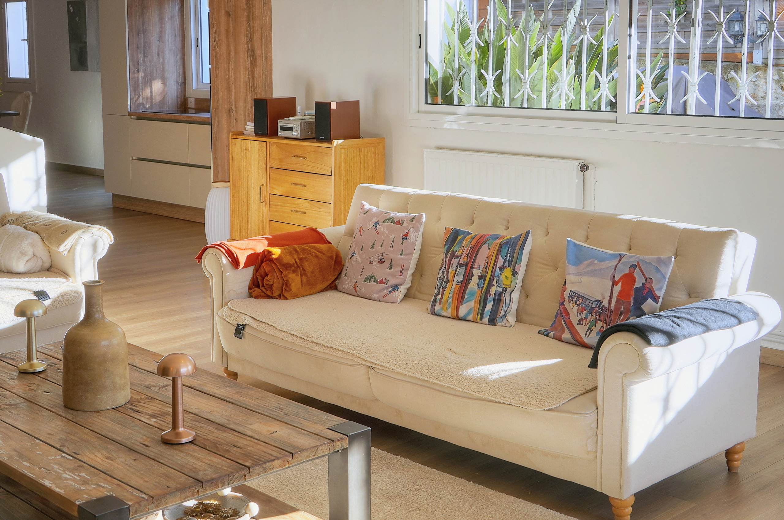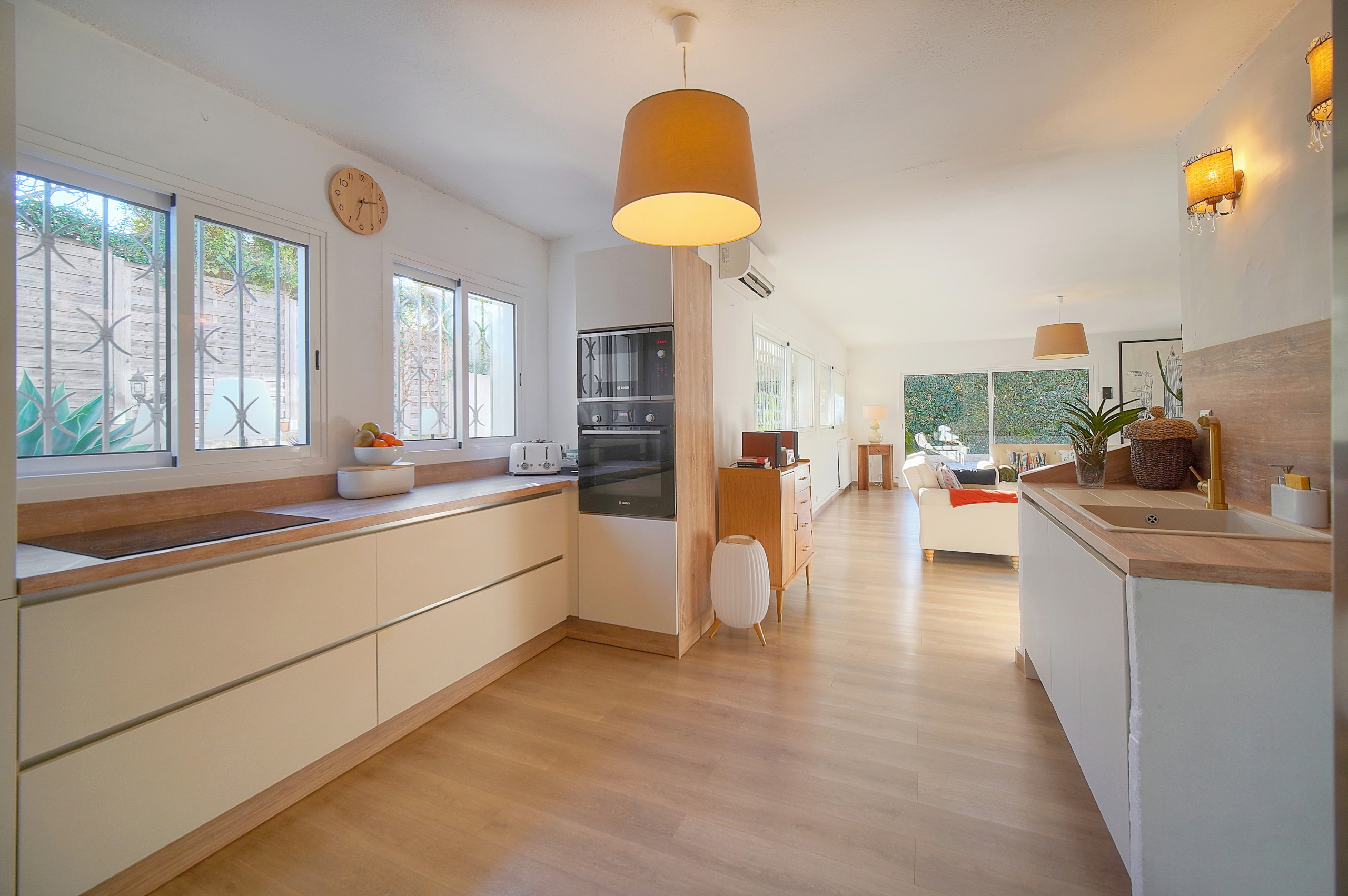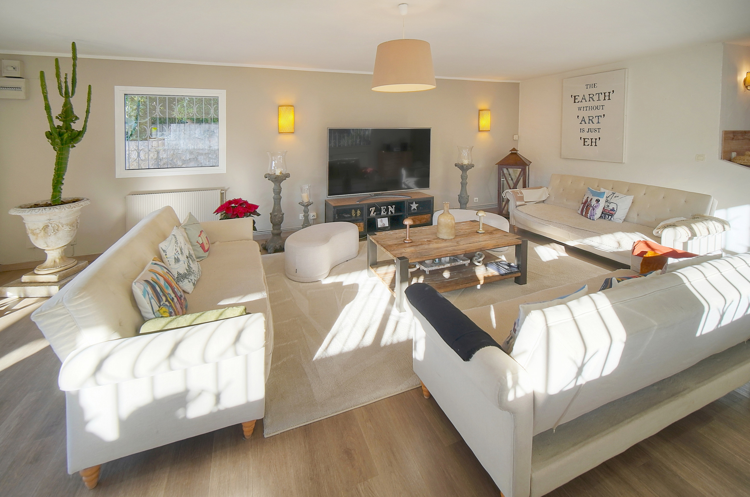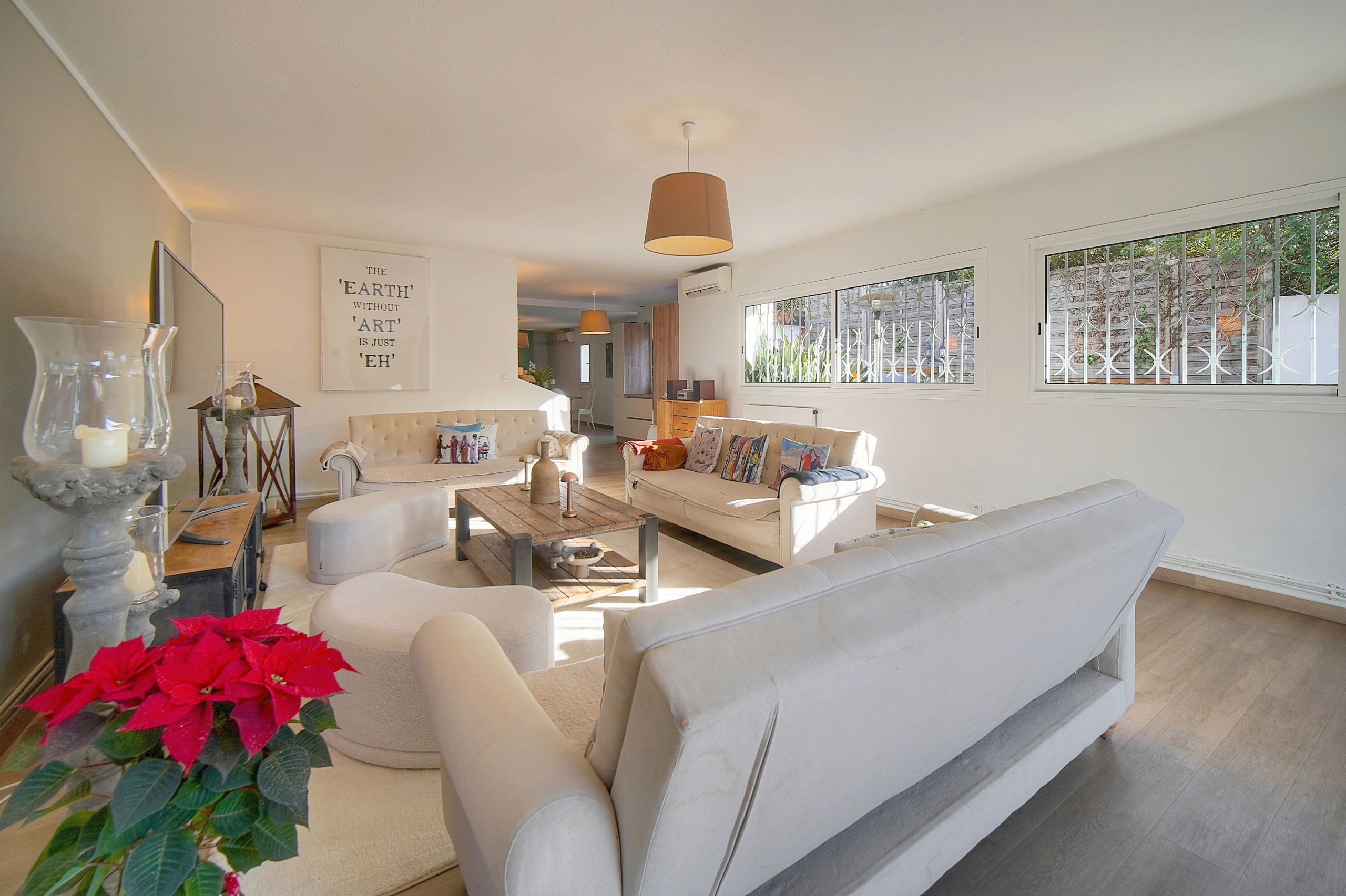 - Grand salon ouvert sur la terrasse et le jardin.