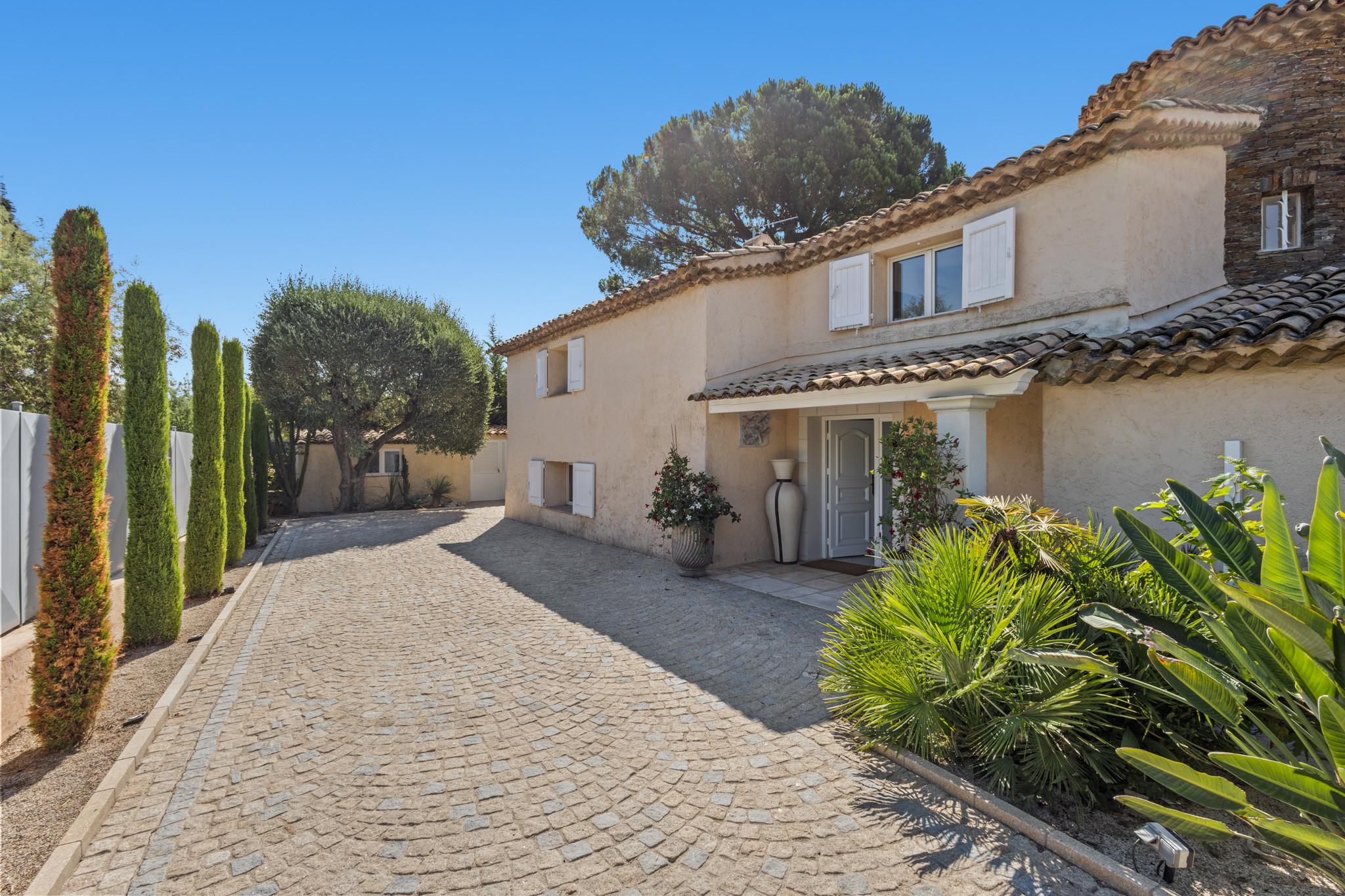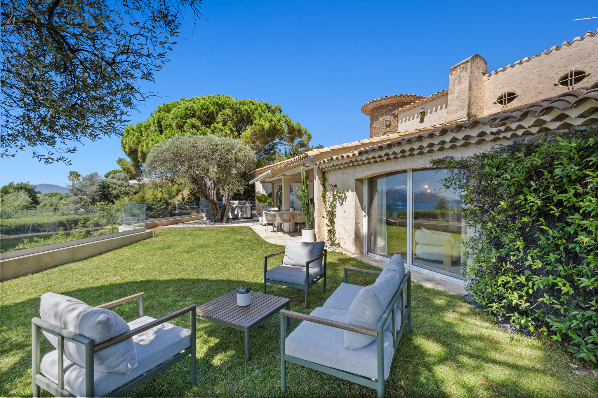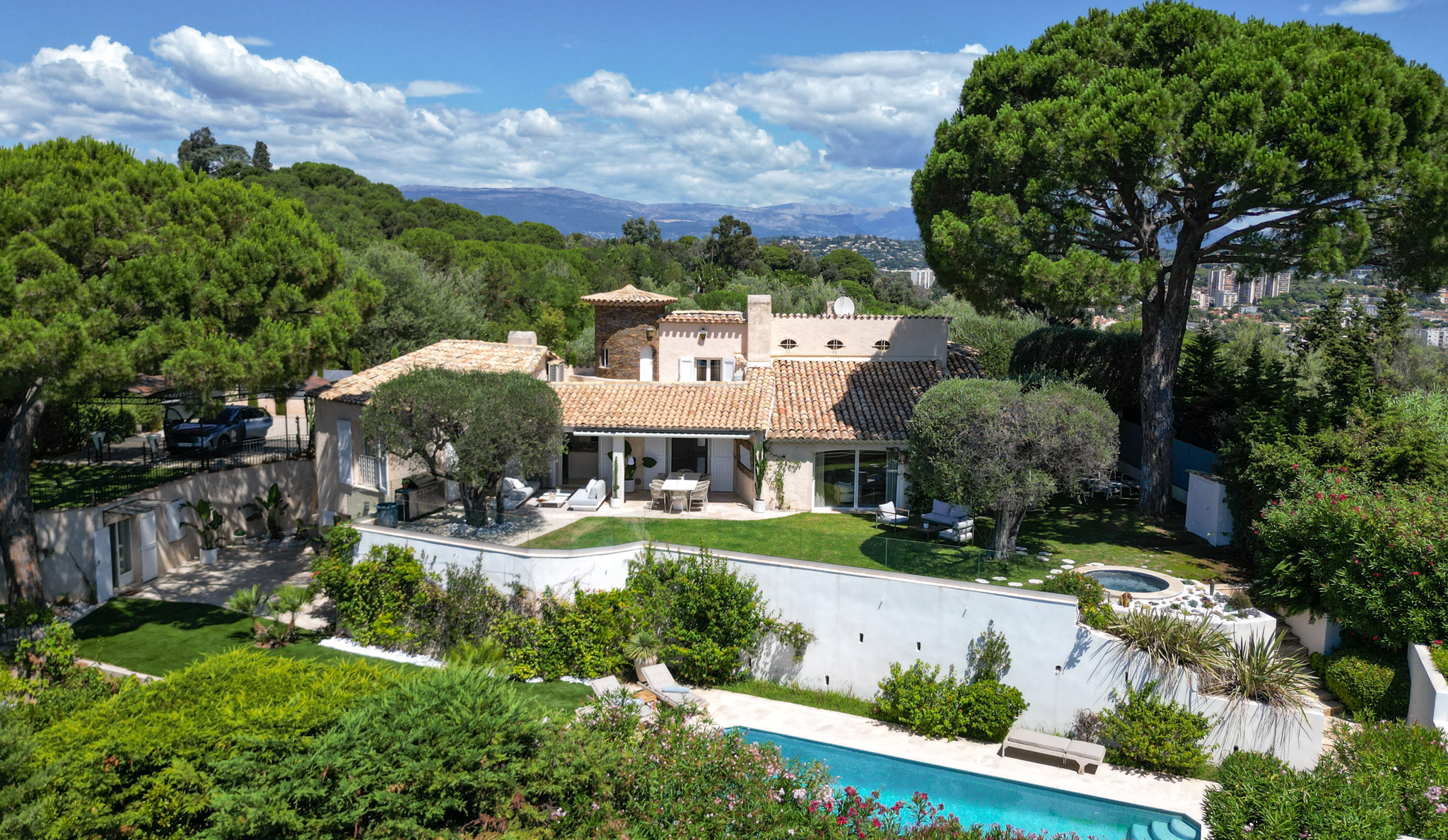 Villa à Cannes qui possède 7 chambre(s) et Capacité pour 14 personnes. Logement de 300 m². Elle dispose de jardin, mobilier de jardin, clôture, 30 m² de terrasse, lave-linge, sèche-linge, barbecue, fer à repasser, accès internet (wifi), sèche-cheveux, balcon, alarme, chauffage pompe à chaleur, climatisation, piscine privée, piscine chauffée privée, garage et parking même bâtiment, 5 Télévisions. La cuisine américaine, à induction, est équipée avec réfrigérateur, micro-ondes, four, congélateur, lave-vaisselle, vaisselle/couverts, ustensiles/cuisine, cafetière, friteuse, grille pain, bouilloire et presse-agrumes.