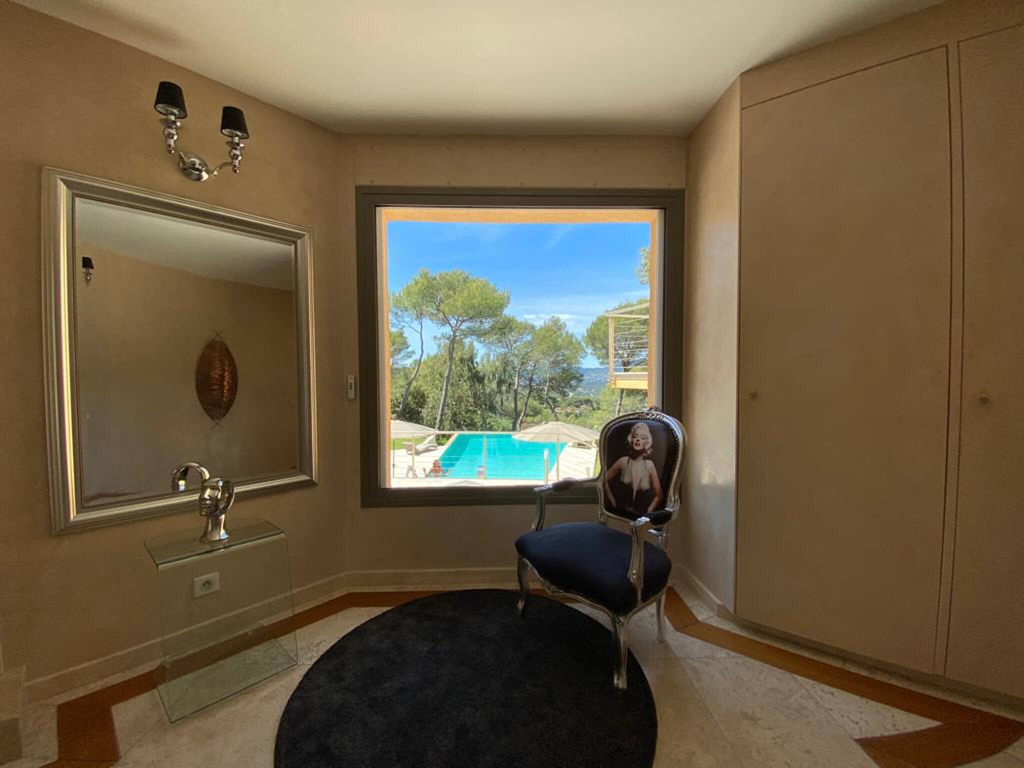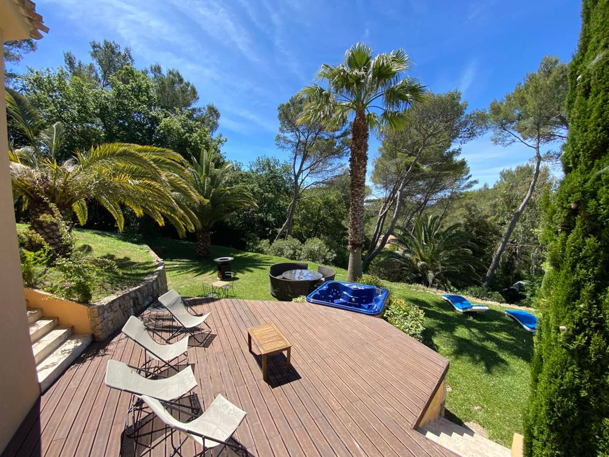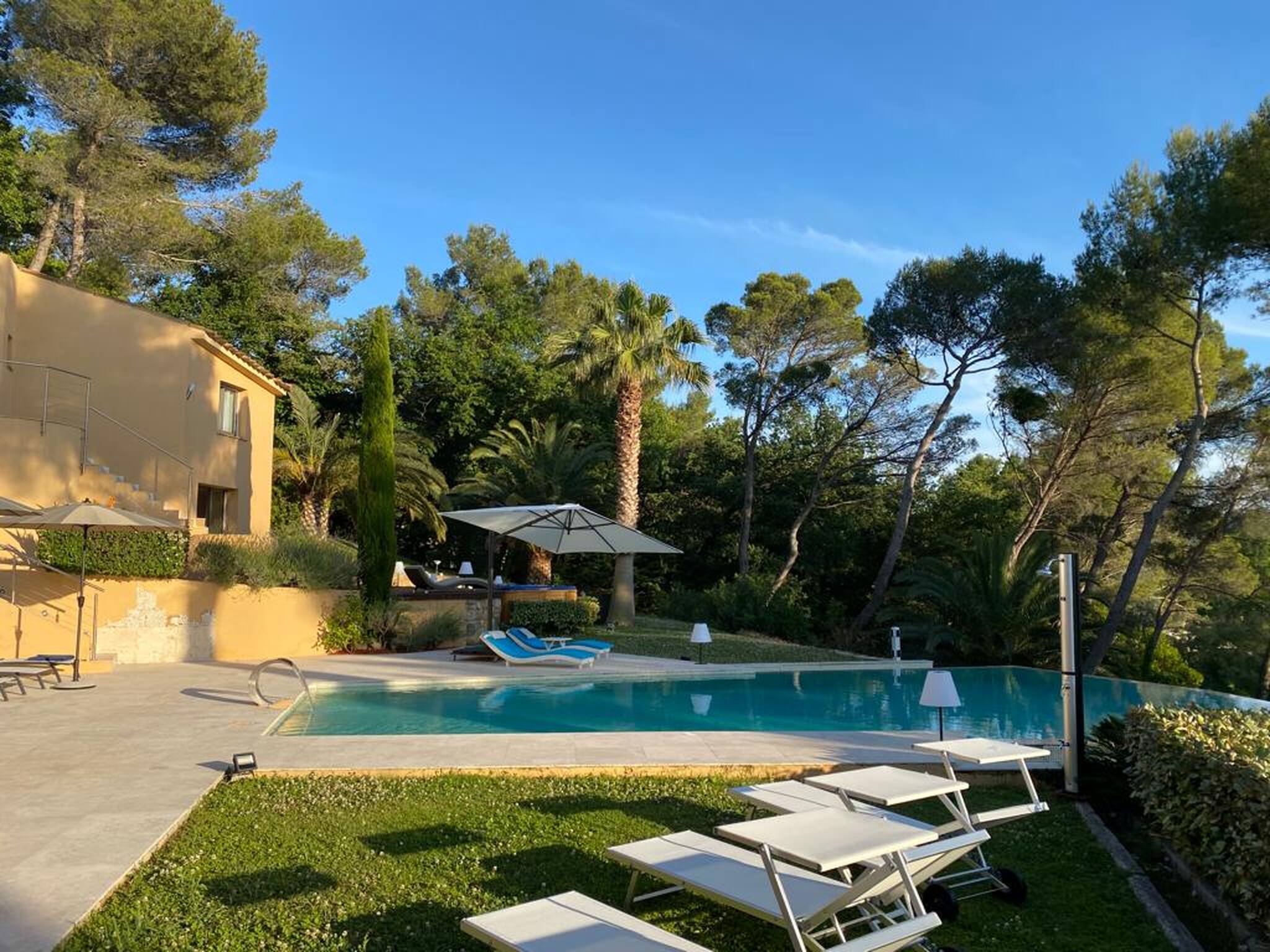 La Villa possède un spa. Une terrasse est également à votre disposition. Vous séjournerez à 4,2 km de Cannes et à 24 km de Nice. L'aéroport de Nice-Côte d'Azur, le plus proche, est implanté à 18 km. Disponibilité et tarifsVilla avec Piscine Privée (12 personnes) Villa de 500 m² Terrasse Télévision Climatisation Lave-linge Mini bar Cuisine Literie Chambre 1 : 1 lit double Chambre 2 : 1 lit double Chambre 3 : 1 lit double Chambre 4 : 1 lit double Chambre 5 : 1 lit double Chambre 6 : 1 lit double Salle de bains Activités Piscine privée Bain à remous Vue Vue sur le jardin This villa has a private pool, kitchen and air conditioning.