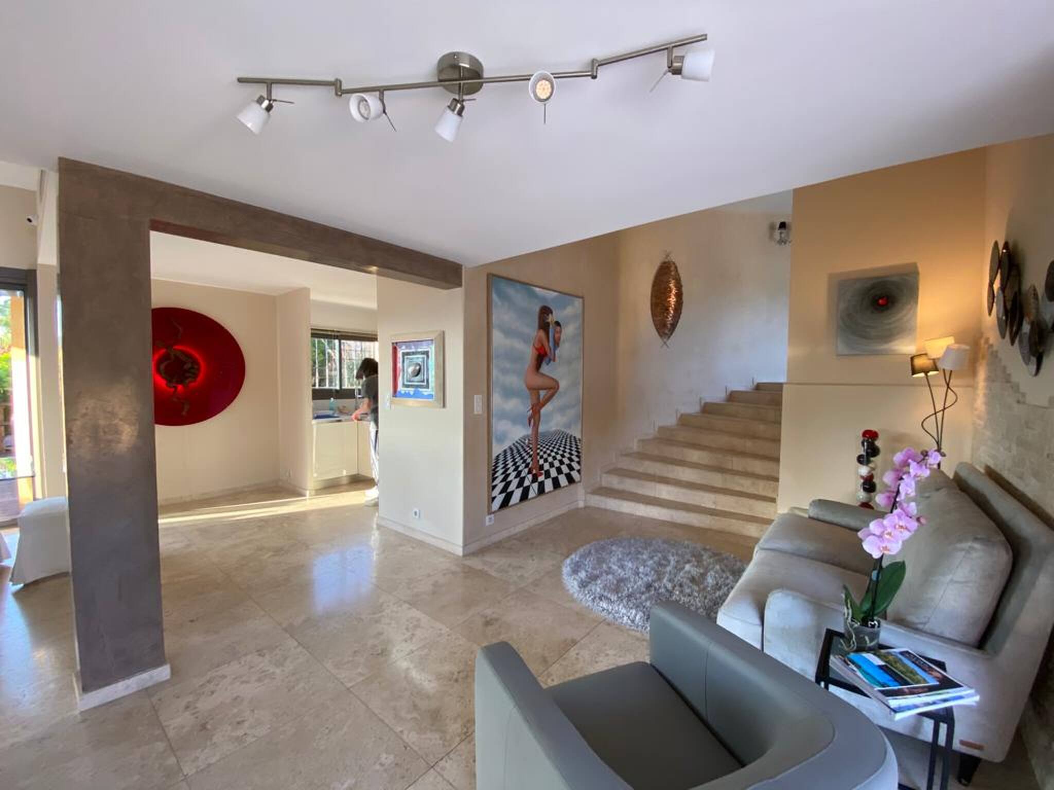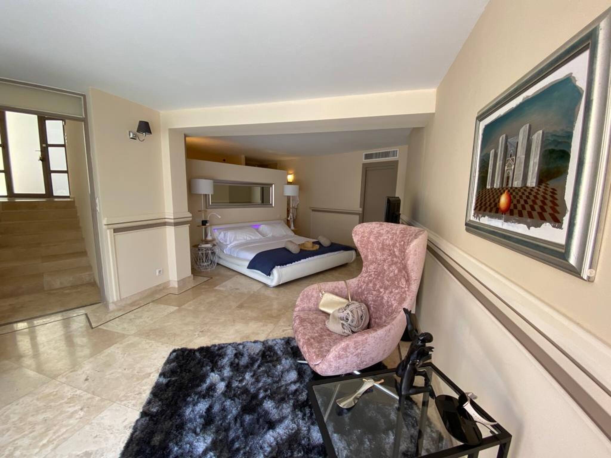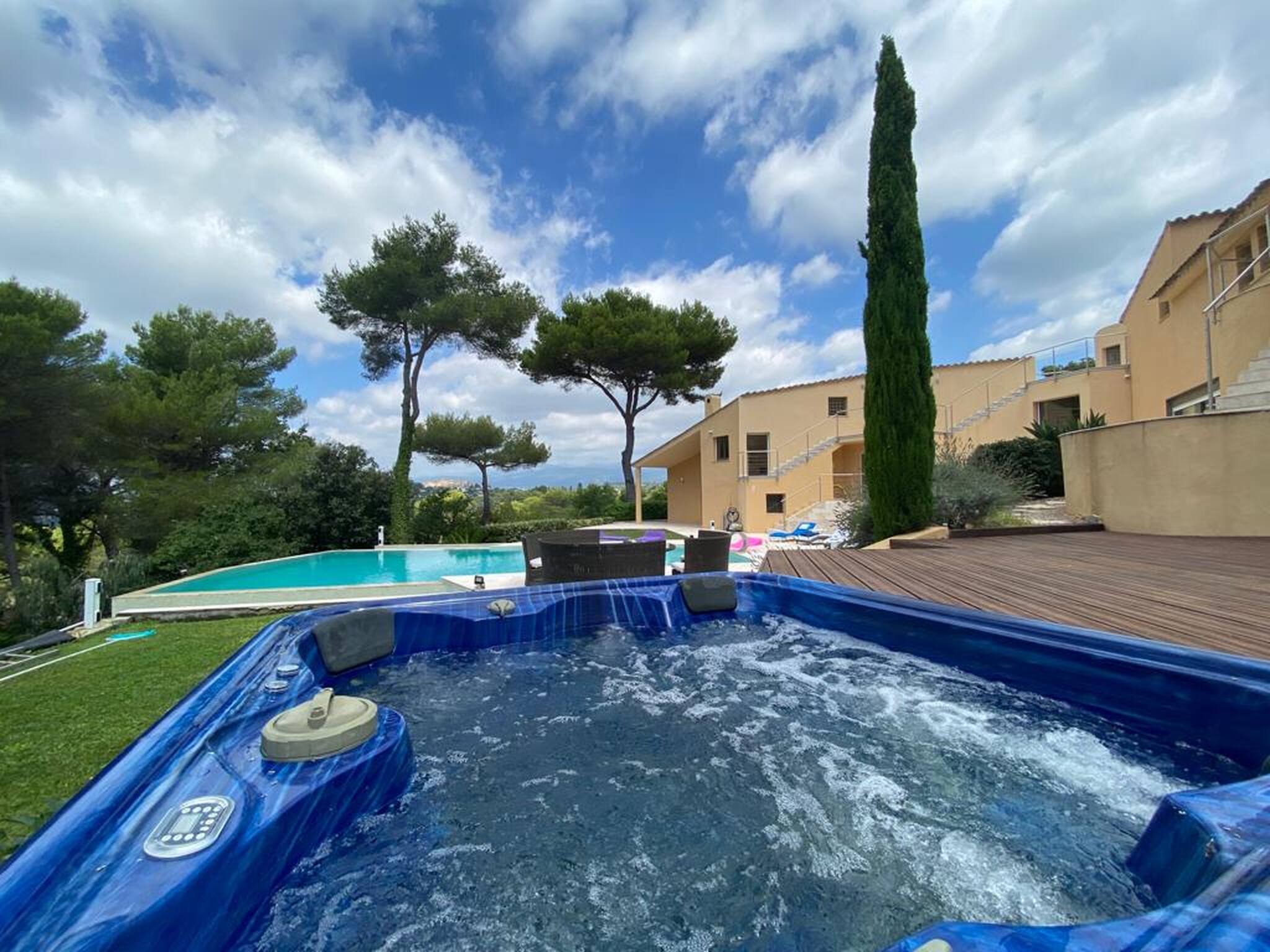 La Villa possède un spa. Une terrasse est également à votre disposition. Vous séjournerez à 4,2 km de Cannes et à 24 km de Nice. L'aéroport de Nice-Côte d'Azur, le plus proche, est implanté à 18 km. Disponibilité et tarifsVilla avec Piscine Privée (12 personnes) Villa de 500 m² Terrasse Télévision Climatisation Lave-linge Mini bar Cuisine Literie Chambre 1 : 1 lit double Chambre 2 : 1 lit double Chambre 3 : 1 lit double Chambre 4 : 1 lit double Chambre 5 : 1 lit double Chambre 6 : 1 lit double Salle de bains Activités Piscine privée Bain à remous Vue Vue sur le jardin This villa has a private pool, kitchen and air conditioning.