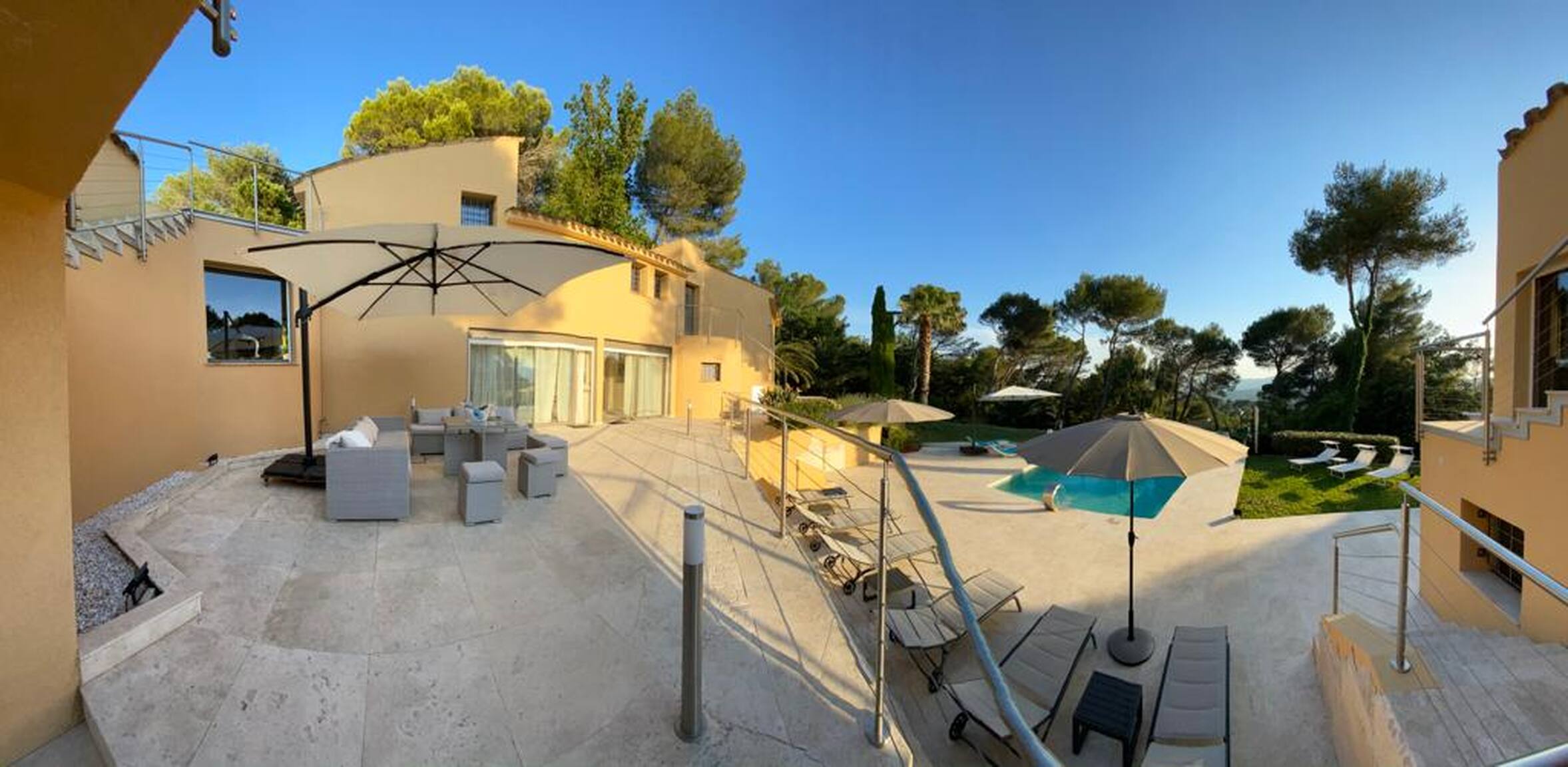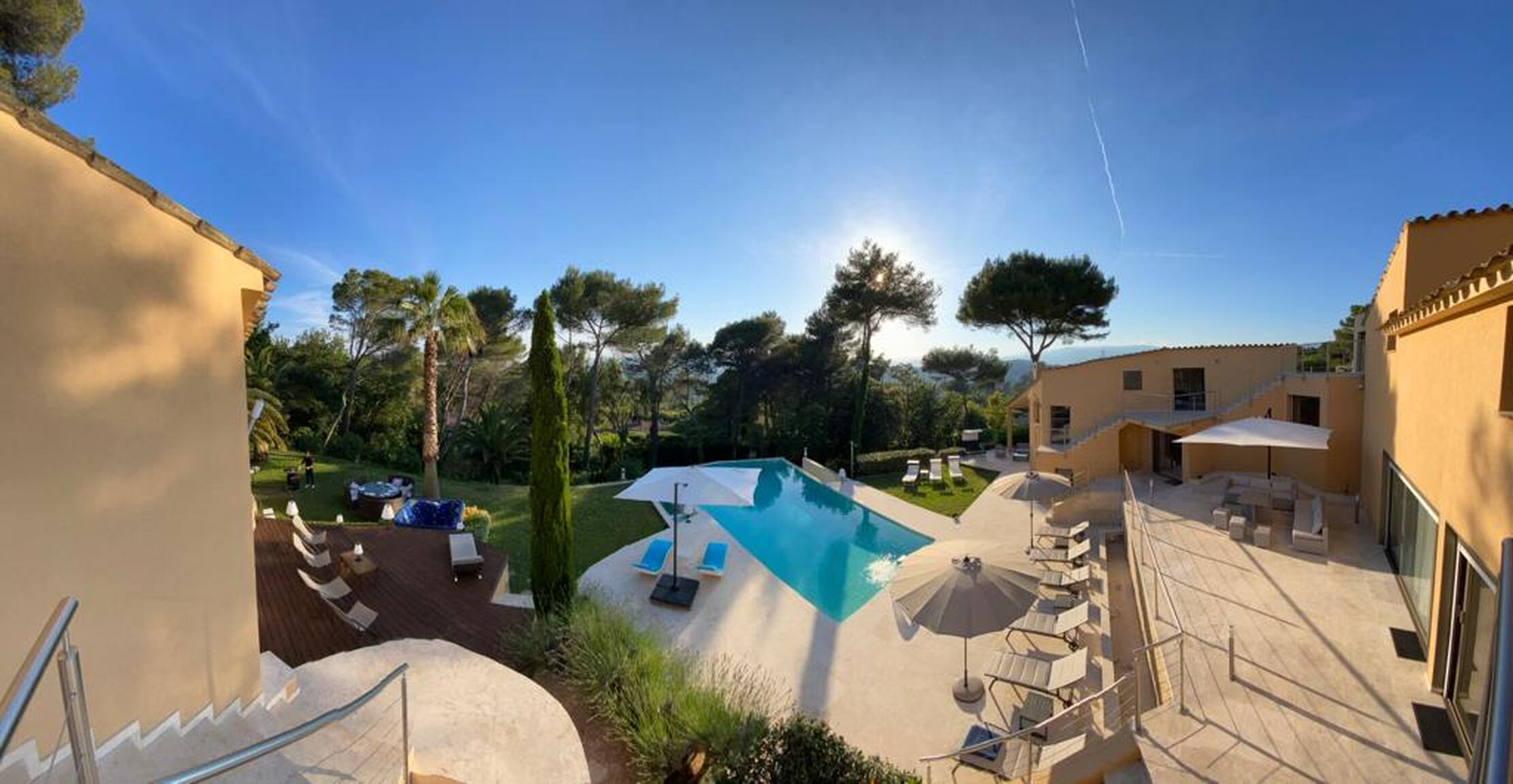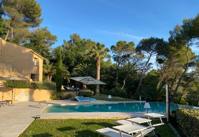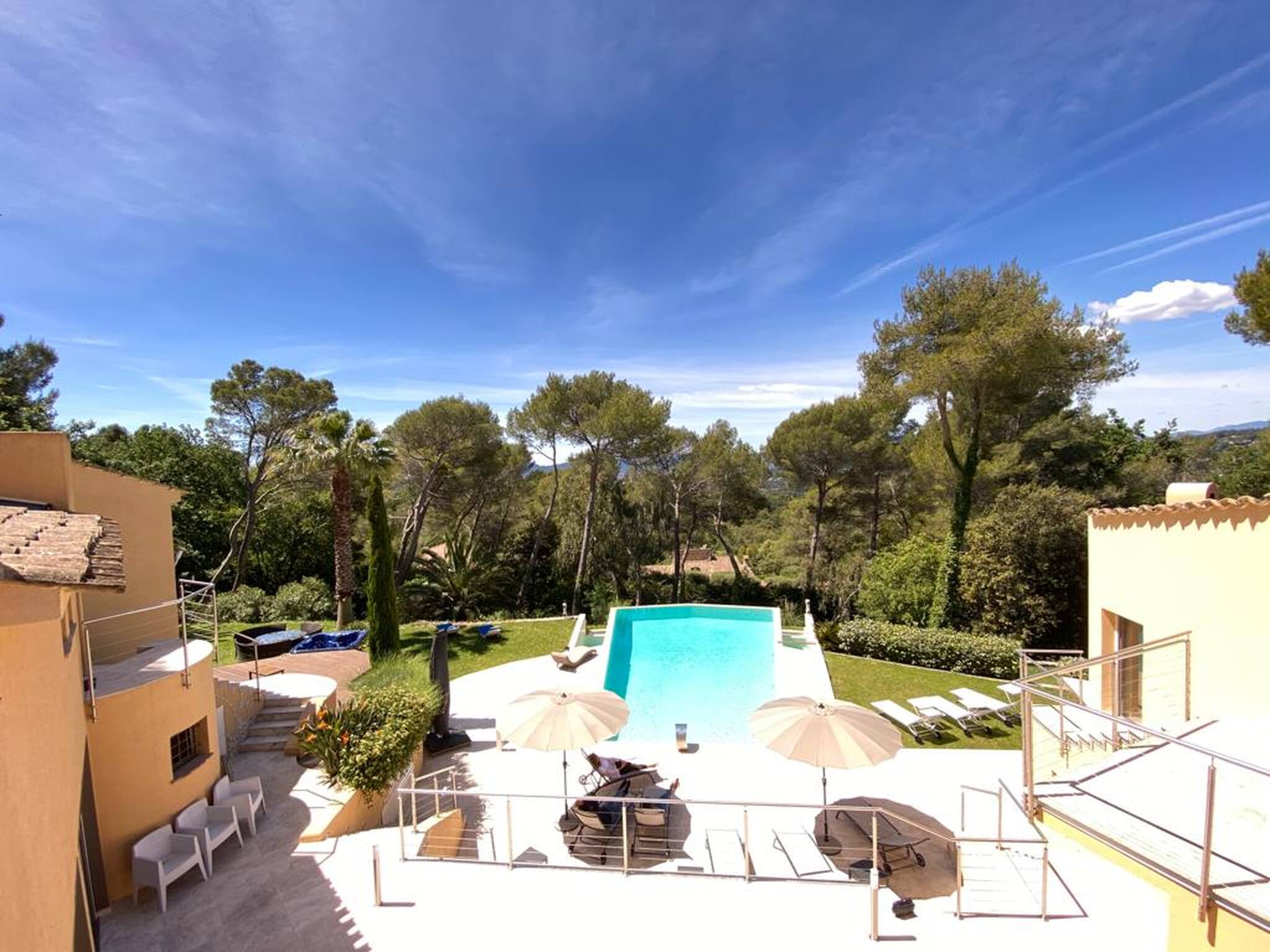 Dotée d'un jardin et d'une piscine extérieure, la Villa est située à Mougins. Vous séjournerez à 47 km de Saint-Tropez. Vous bénéficierez gratuitement d'un parking privé sur place et d'une connexion Wi-Fi. La villa comprend 6 chambres, une télévision à écran plat, une cuisine équipée, un lave-linge et 6 salles de bains avec un spa.